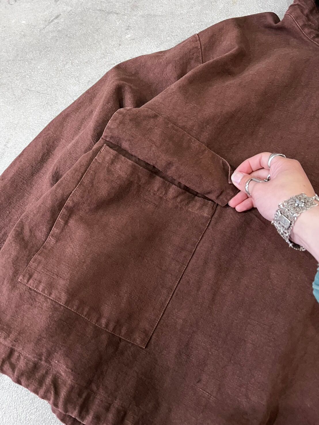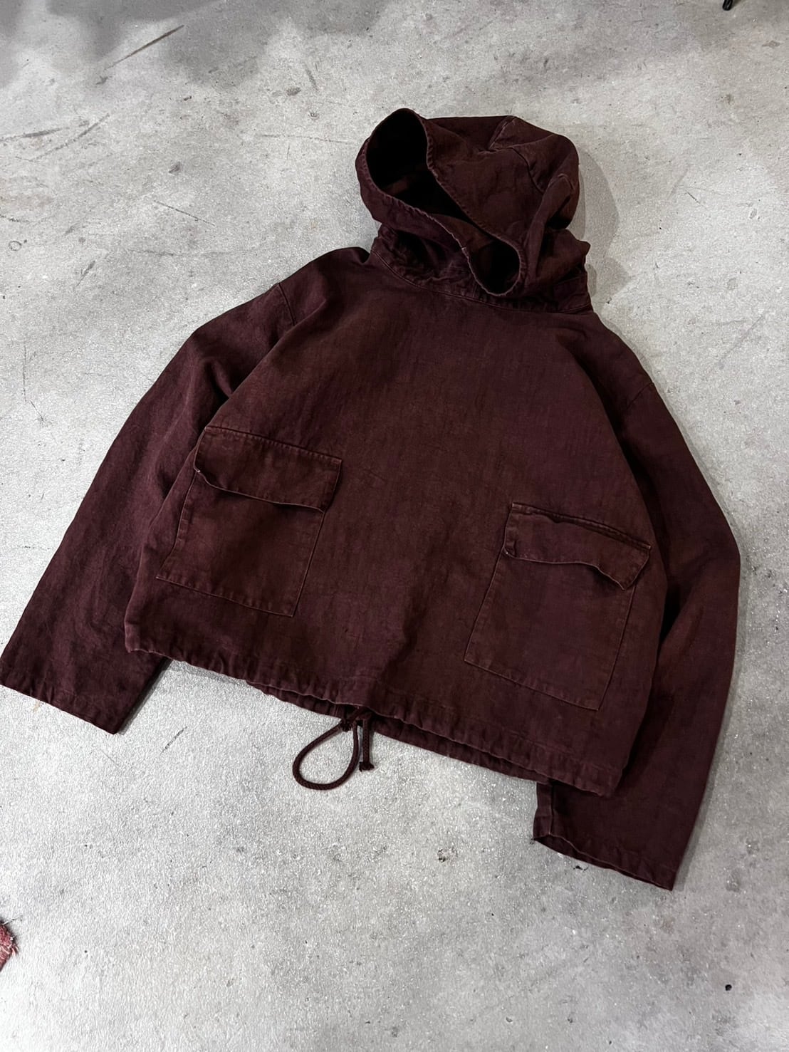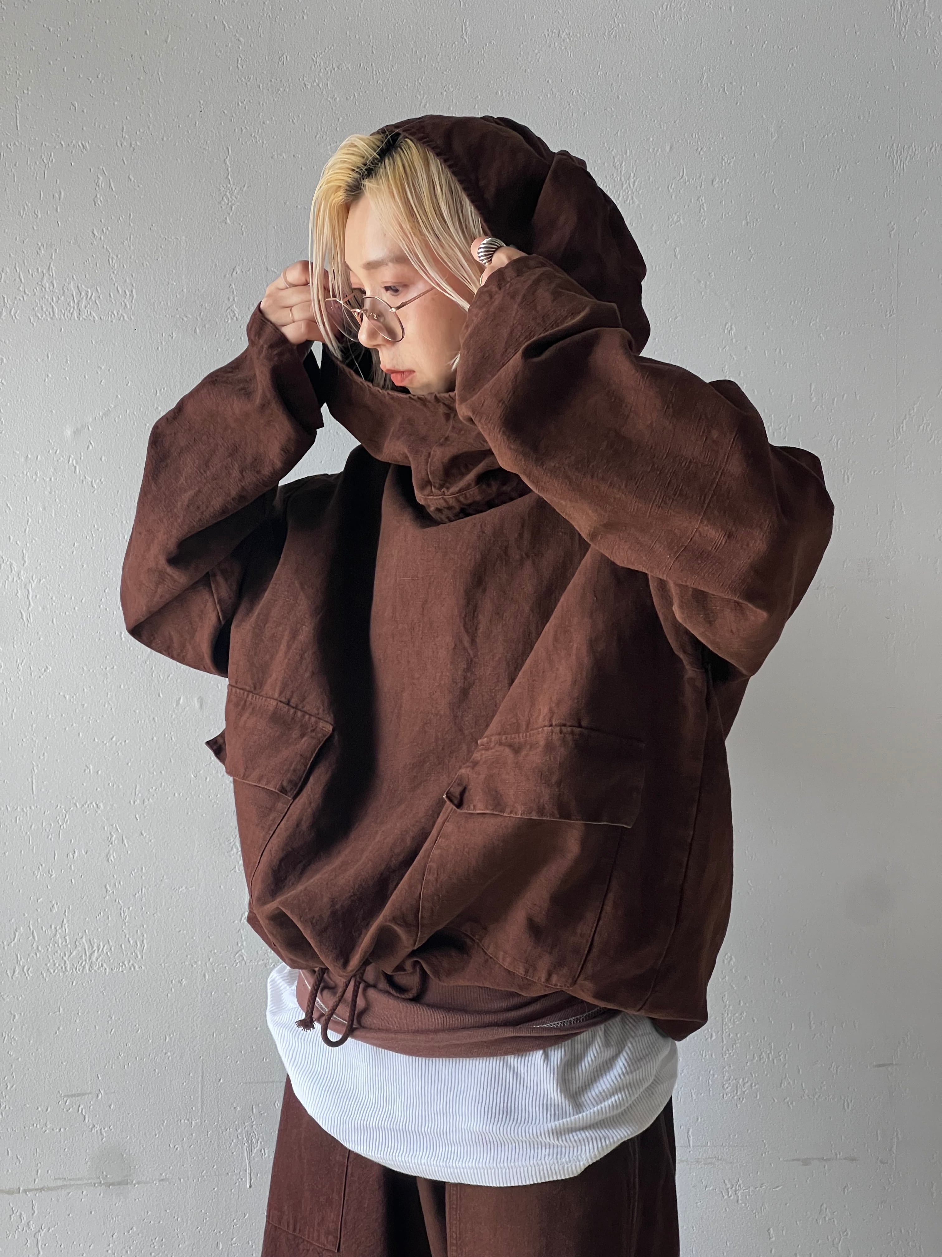 お客様お問い合わせ品 リメイクVintageリネンサルベージパーカー 硫化バイオ染め 茶