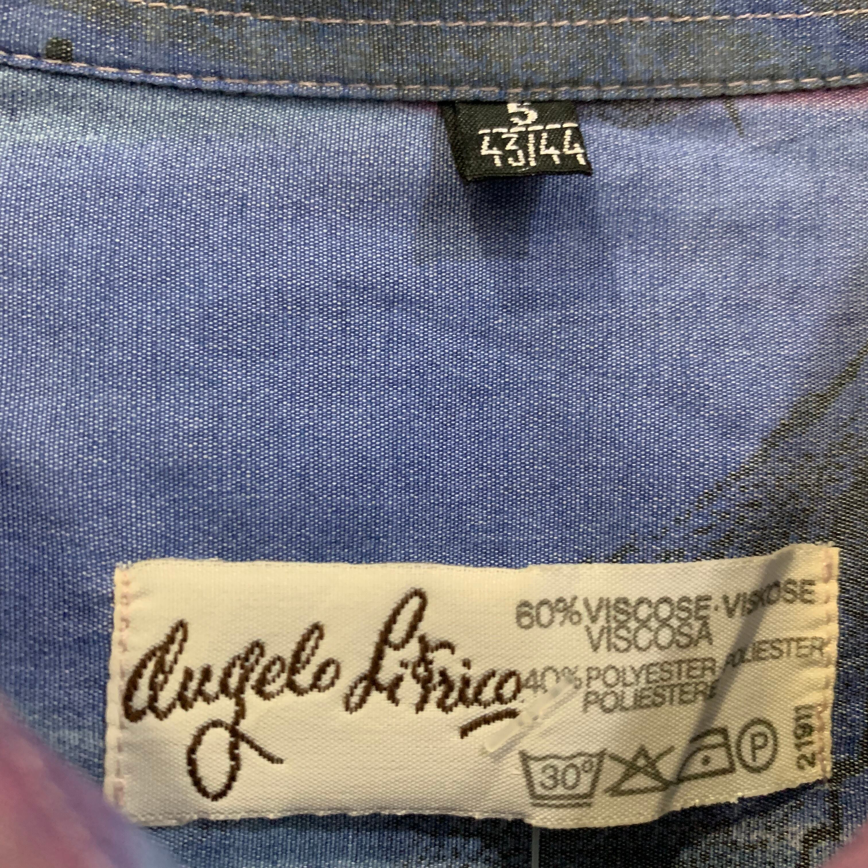 ヨーロッパ古着 OLD 総柄 長袖シャツ 青 紫 抽象柄
