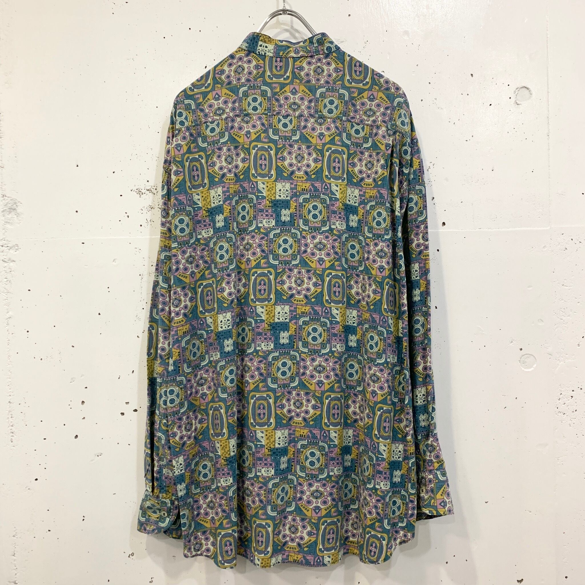 ヨーロッパ古着 総柄 バンドカラー 長袖シャツ 紫 青 黄