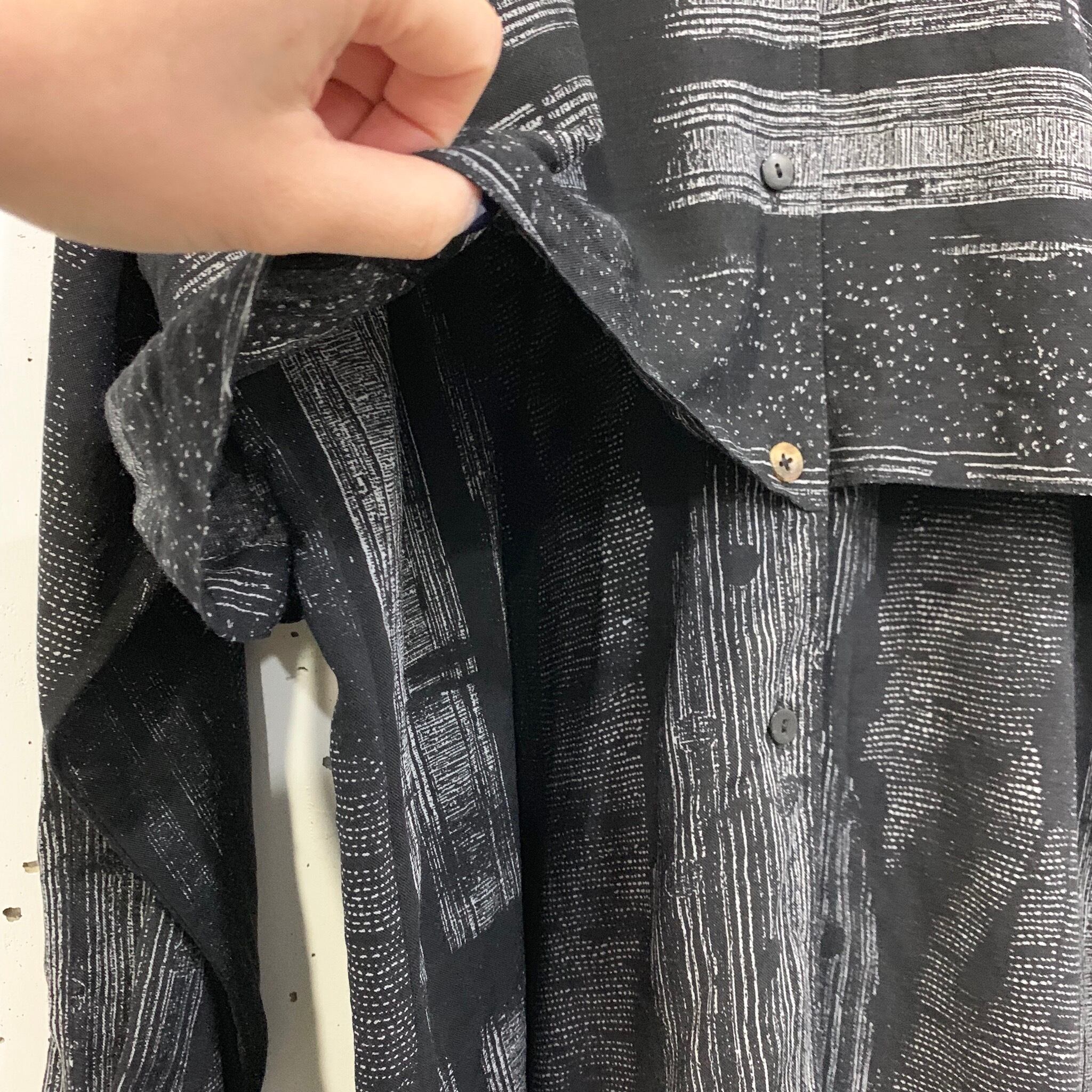 ヨーロッパ古着 OLD 総柄 2トーン 長袖デザインシャツ 黒 白 抽象柄