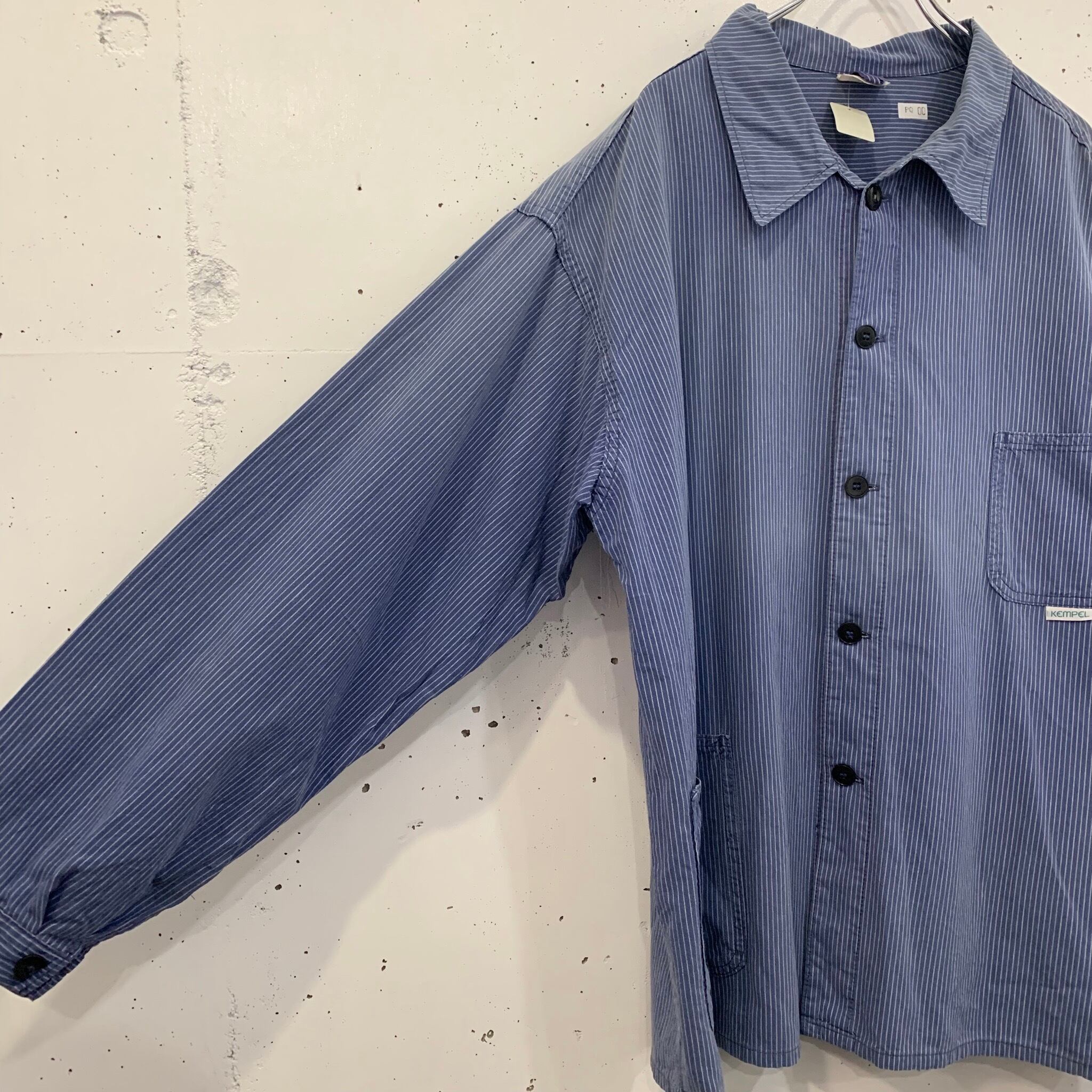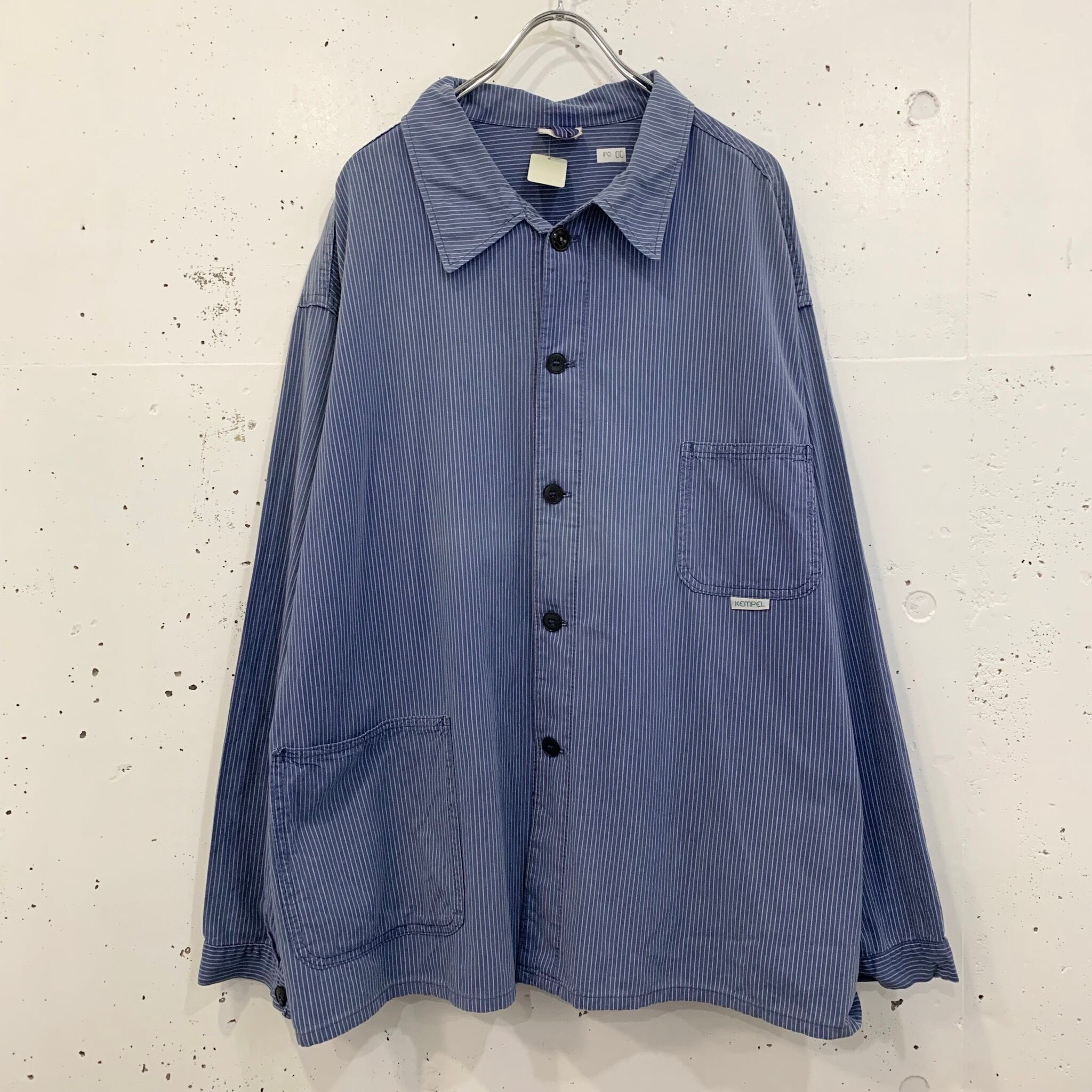 ヨーロッパ古着 OLD ユーロワークジャケット ストライプ柄 カバーオール 色落ちGOOD